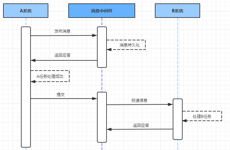 在系统A处理任务A前,首先向消息中间件发送一条消息