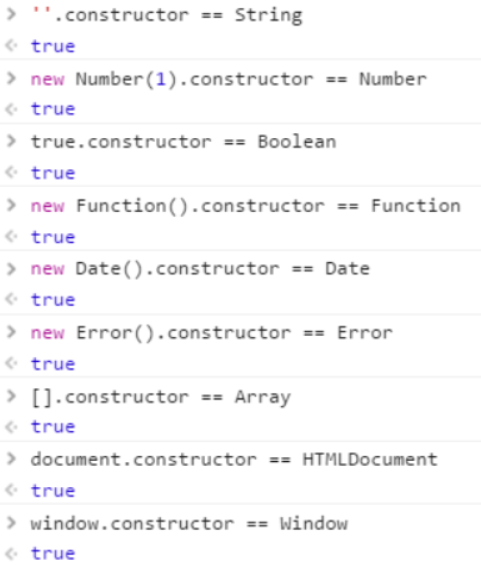 typeof 123 // "number" typeof '123' // "string" typeof false // "boolean" typeof function f() {} // "function" typeof undefined // "undefined" typeof window // "object" typeof {} // "object" typeof [] // "object" typeof null // "object"