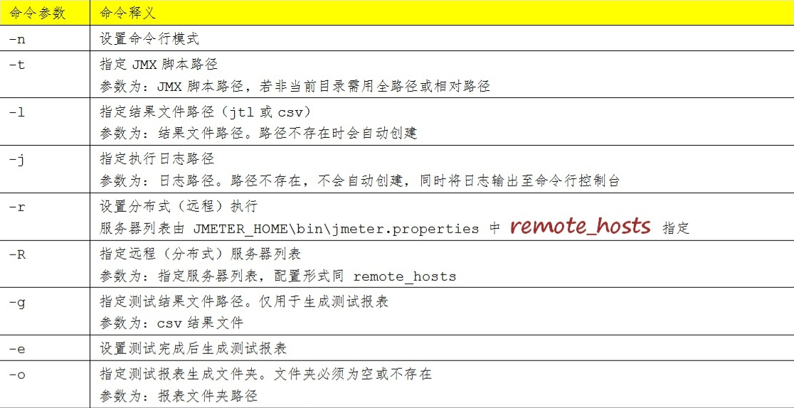 26 jmeter.bat(Windows)/jmeter.sh(Linux) -n -t test-file [-p property-file] [-l results-file] [-j log-file]