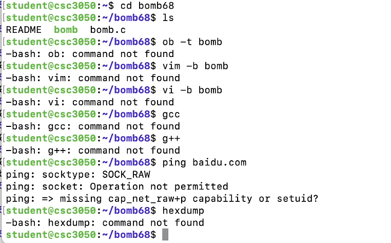 可当我满怀信心的去hexdump的时候,却发现这个云端系统完全不支持hexdump命令,我想是不是hexdump软件没有安装,准备 sudo apt install的时候,却发现连网都没有。