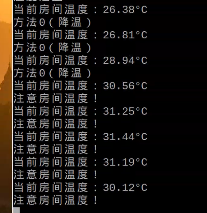 循环监控:程序进入循环,每隔一定时间(如1秒)读取一次温度数据,并根据当前温度执行控制逻辑,实现对房间温度的实时监控。