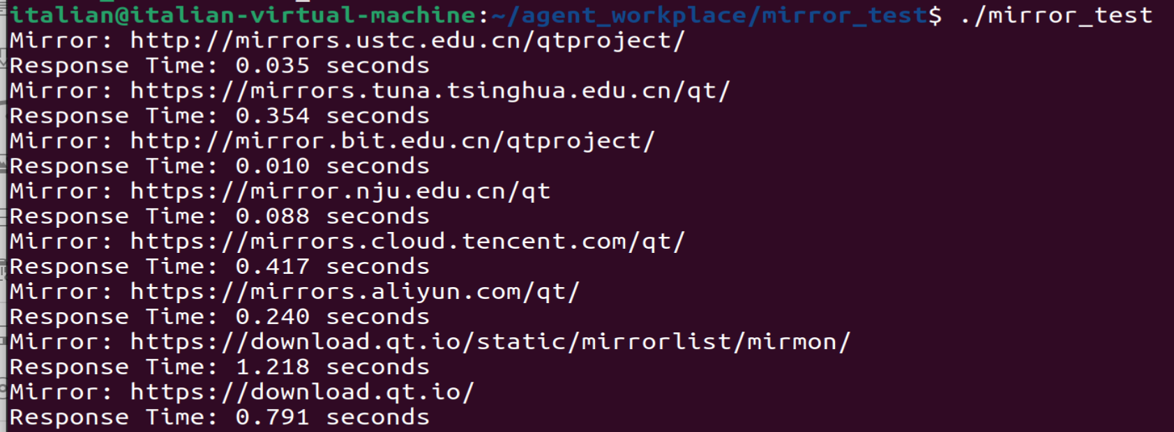 printf("Mirror: %s\nResponse Time: %.3f seconds\n", mirrors[i], response_time);