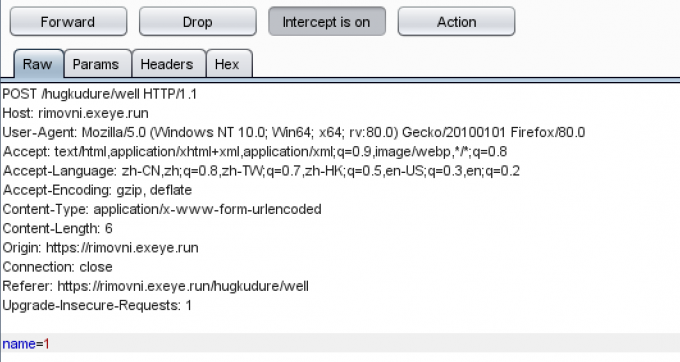 可以看到请求类型为post,name作为查询参数可以完全控制。