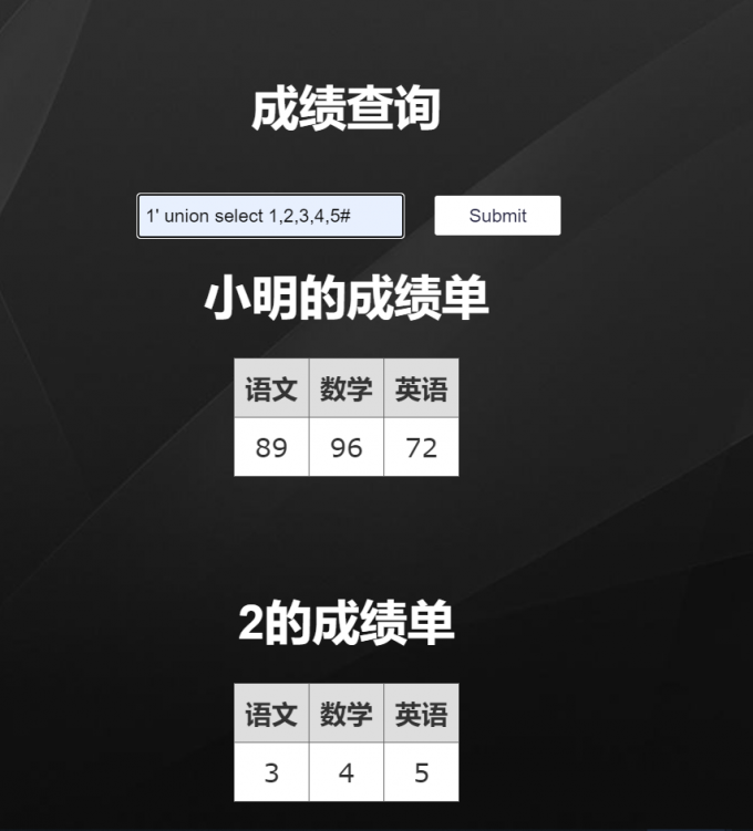 输入1' and 1=1#正常1' and 1=2#无回显内容