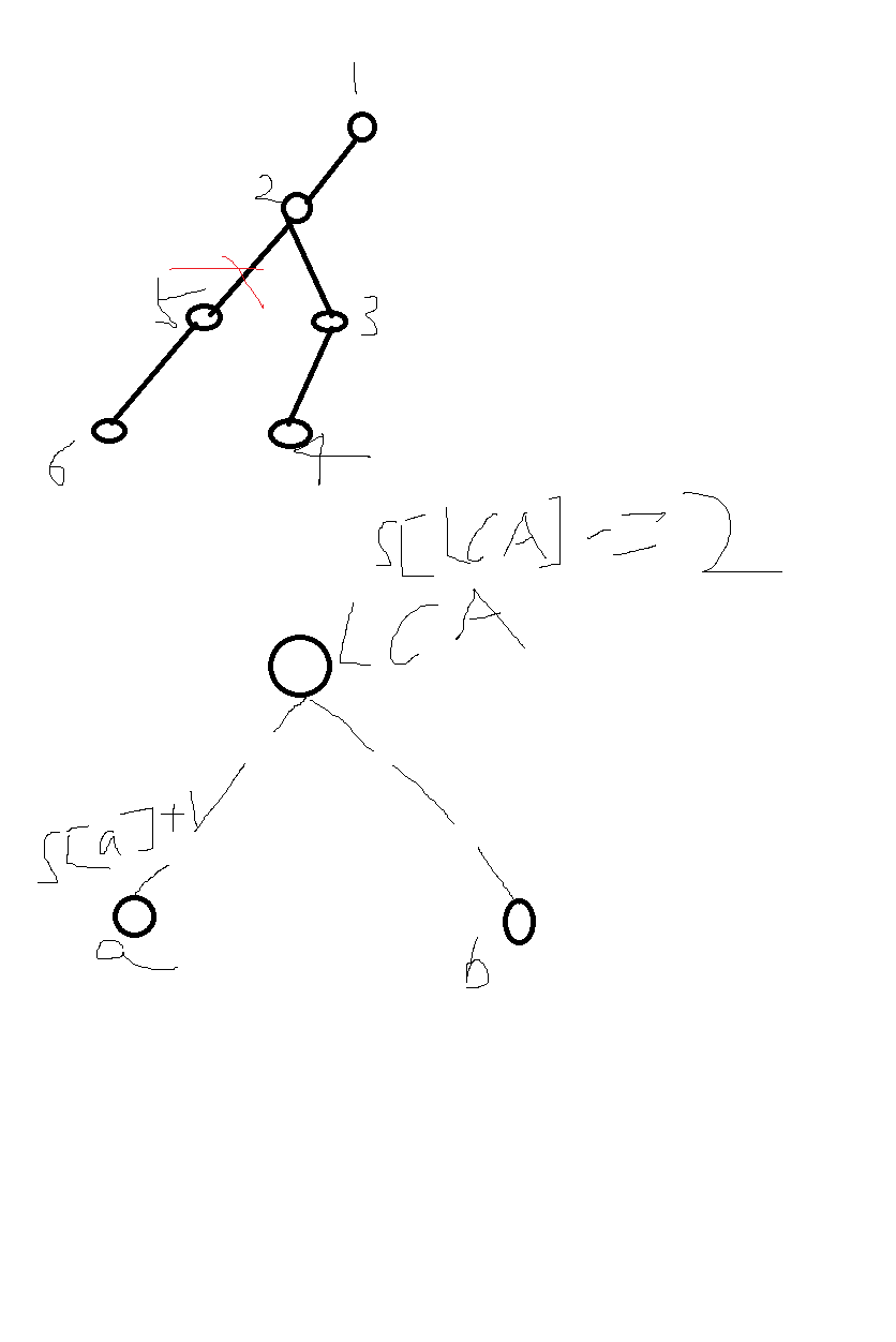 所以先标记一下原来相通时状态,s[a]表示a到其父亲必须右边,而他们公共祖先往上不一定要边所以要减去2因为a,b各贡献+1