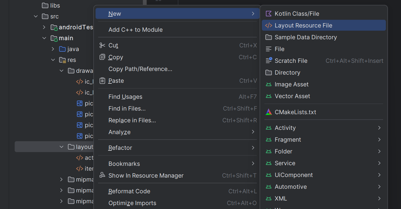 然后写记录的布局每条记录布局相似,写item的xml文件这么创建