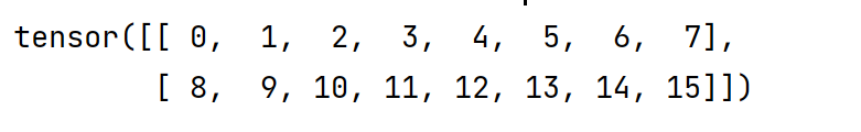 A=torch.arange(16).reshape(2,8)#2行8列16个元素