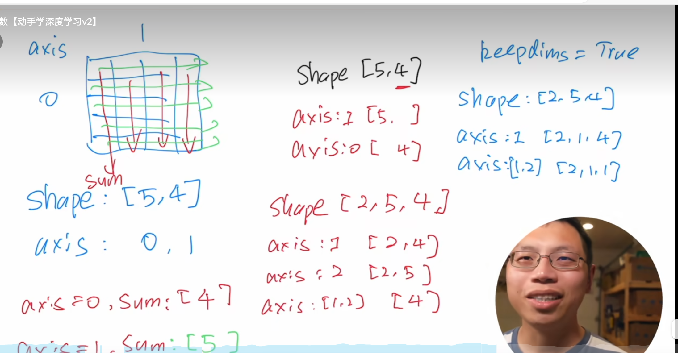 print(" A.sum(axis=1, keepdims=True)")#按列求和且保持维度不变
