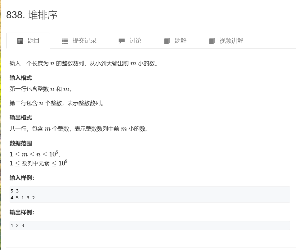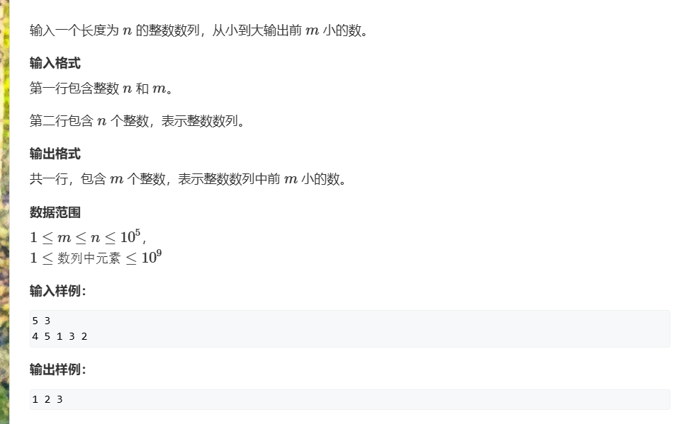 从小到大输出前m小的数:用小根堆。每次输出堆顶,弹出堆顶。