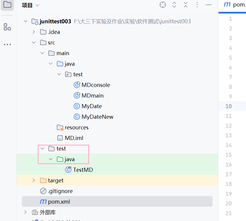 然后可以在test->java里面写测试代码,不是main里的java,main里那个test目录只是名字取成test与测试没有关系