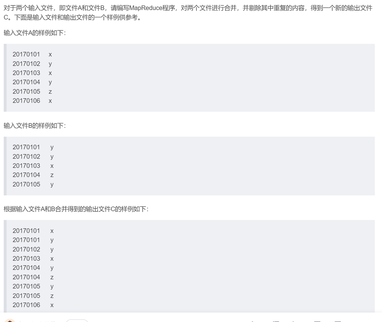 本案例就是将hdfs上input目录下文件合并去重