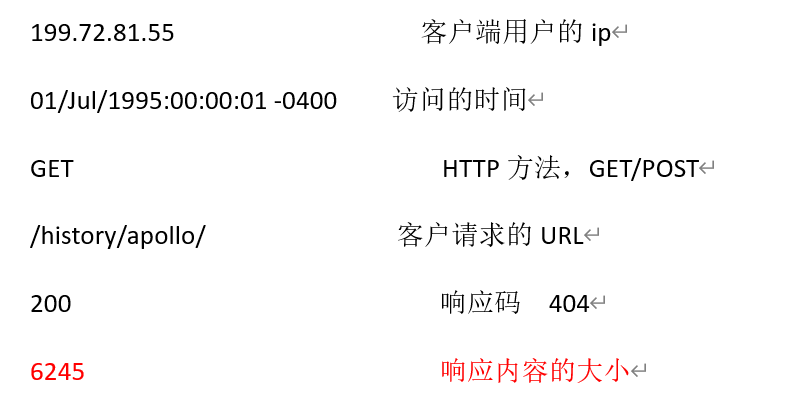 199.72.81.55 - - [01/Jul/1995:00:00:01 -0400] "GET /history/apollo/ HTTP/1.0" 200 6245