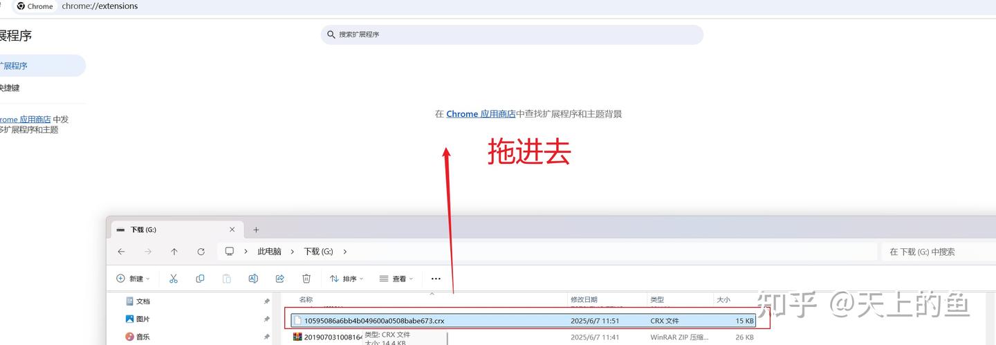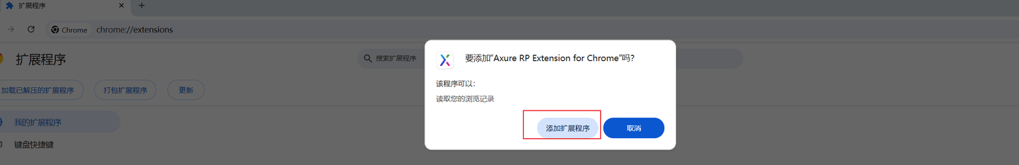 第三步:将下载的扩展程序拖进去,在弹出的弹窗中,点击添加扩展程序