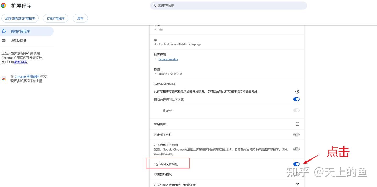 第四步:点击扩展的详情,在详情设置中,点击允许访问文件网址。