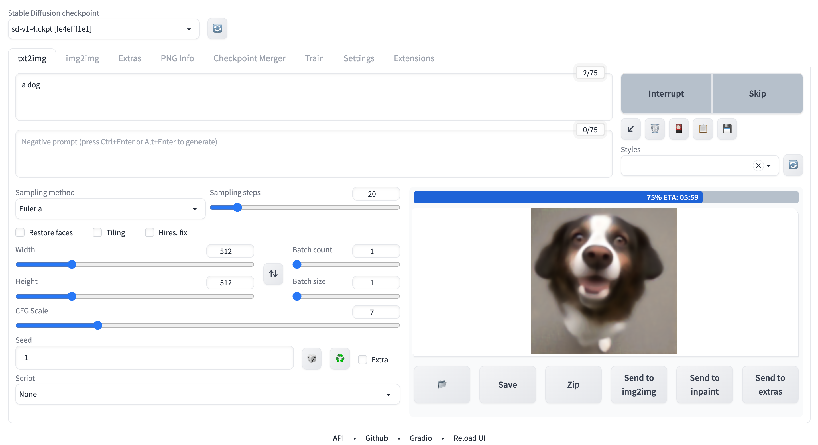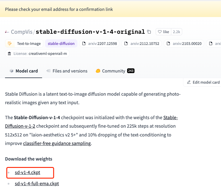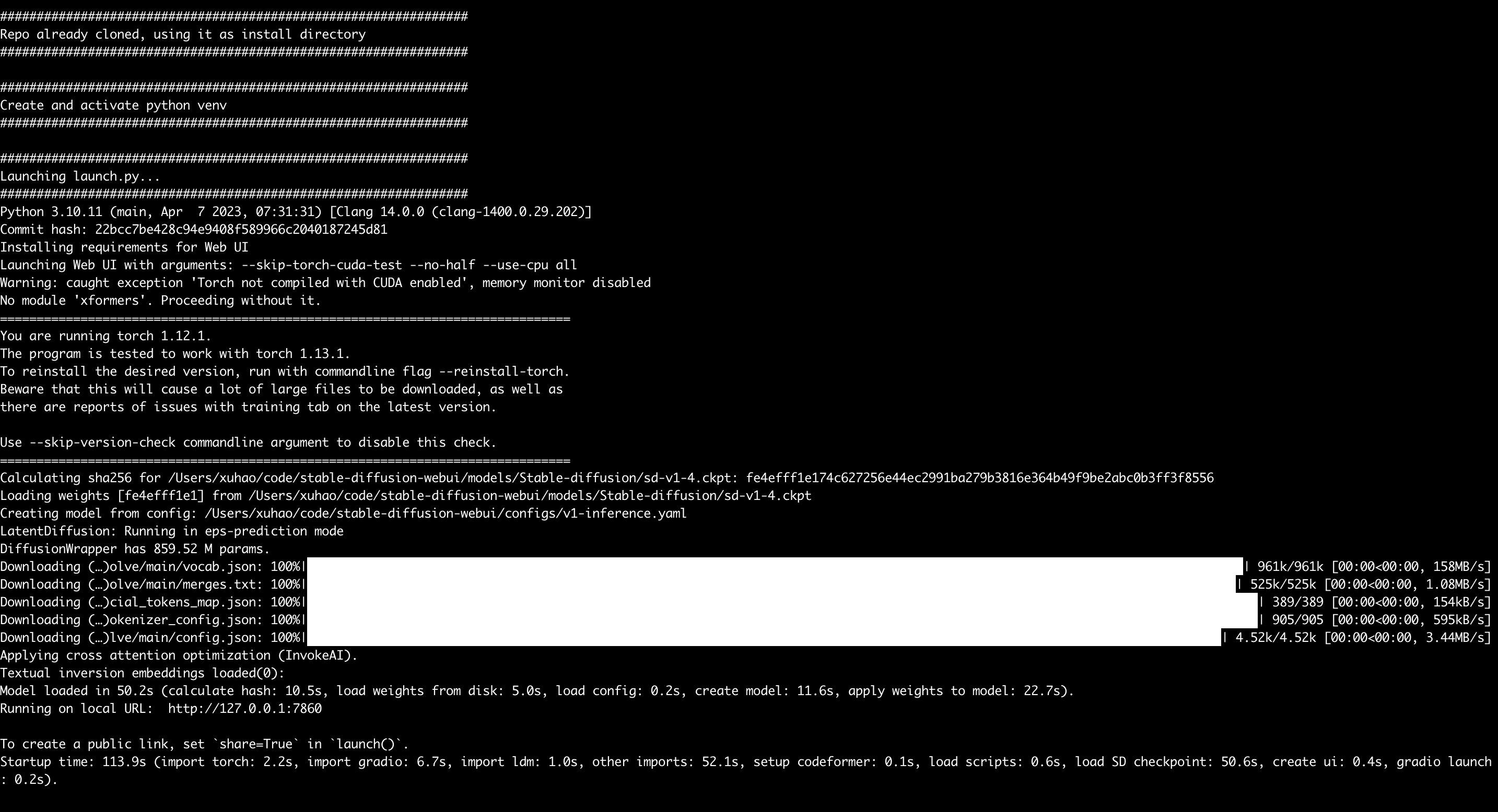 下载完成后,把下载的sd-v1-4.ckpt移动到 /stable-diffusion-webui/models/Stable-diffusion 目录下
