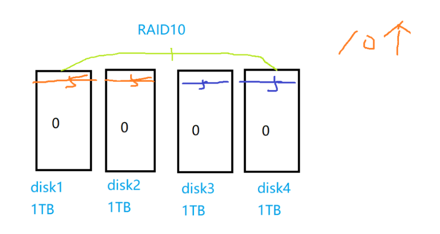 数据有十个,有磁盘一,磁盘二,磁盘三。磁盘四,存在磁盘一5个数据,磁盘二5个数据,磁盘3和磁盘4分别放着磁盘一和磁盘二的备份。可以坏两个硬盘。可以同时损坏两块硬盘,但是不能两个存储的数据是一样的硬盘同时坏。