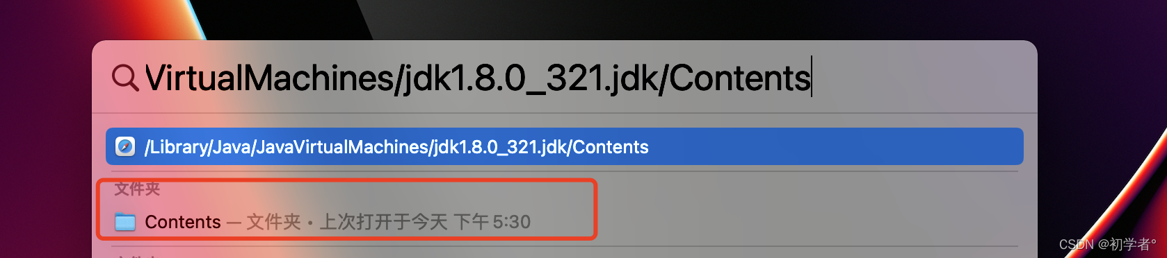 按住command键加空格,搜索/Library/Java/JavaVirtualMachines/jdk-11.0.7.jdk/Contents // 想要用哪个版本的jdk就搜索哪个文件