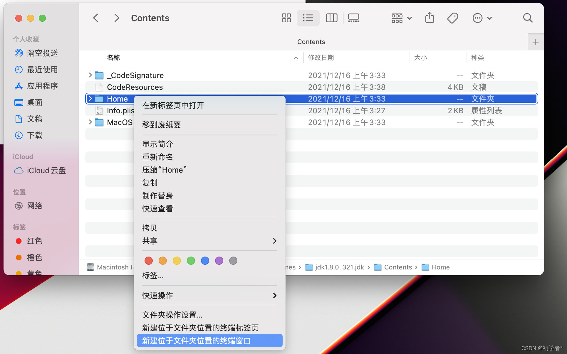 打开java安装路径 Mac默认路径为/Library/Java/JavaVirtualMachines/