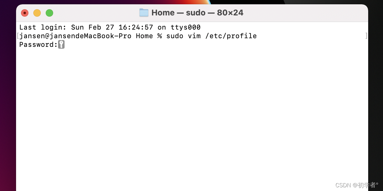 输入指令sudo vim /etc/profile,然后需要输入mac的密码