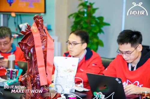 隔了一年之后,关公像“升级”了,有同学去西安校招时看到了关公的皮影艺术品,就“请”了一个回来放在备战室。后来,程立买了一尊木质关公像放过来,去年,副CTO胡喜又买了一尊关公铜像。