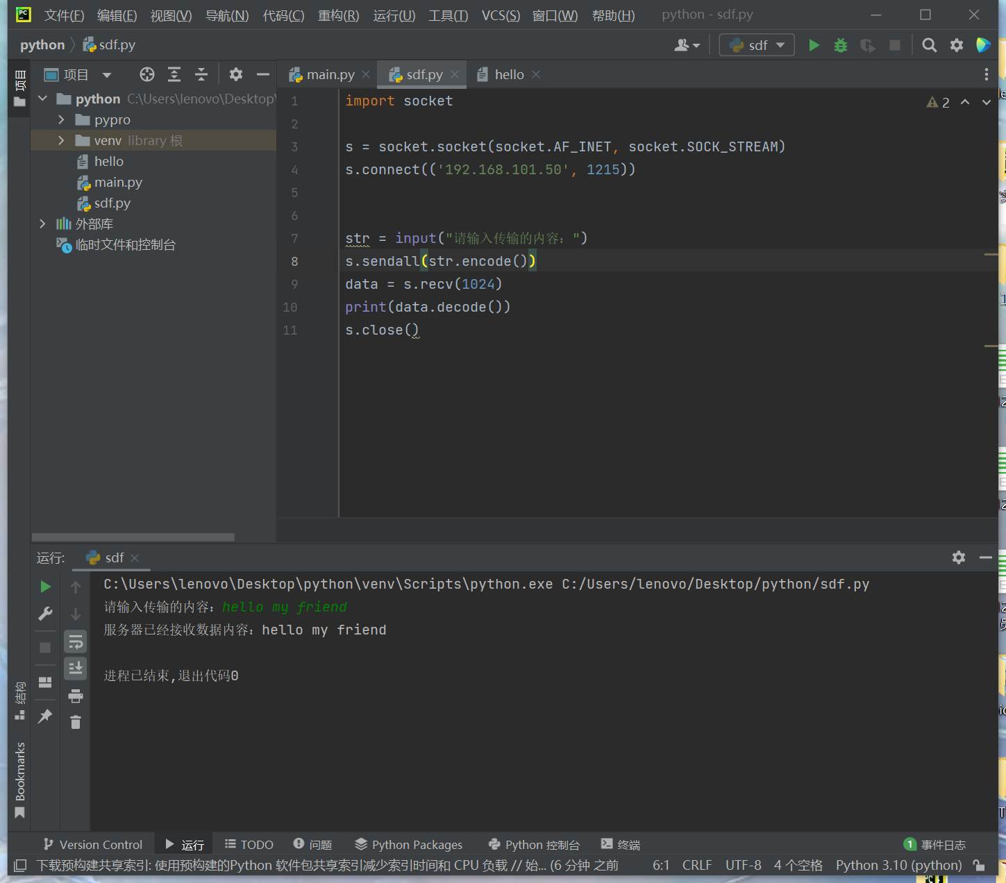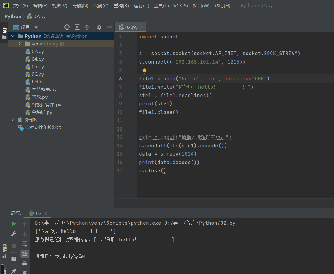 第一步:新建两个py文件,一个作为客户端,一个作为服务端