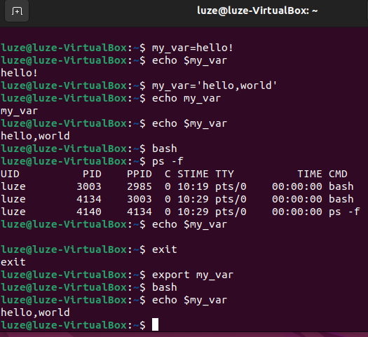步骤2:export 变量 注:意思就是把父shell中的变量导出变成一个全局变量
