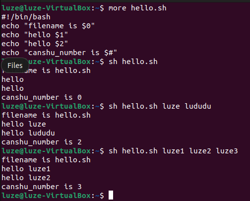 $n(功能描述:n为数字,$0代表脚本名称,$1-$9代表一到九个参数,十以上的要用大括号包含${10})