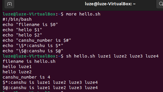 $*:这个变量代表命令行中所有的参数, $*把所有的看成一个整体