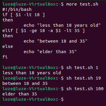 ||:表示上一条命令失败后,才执行下一条命令-a:即all同&&,但是&&不能在 [] 中使用,示例:[ $age -gt 18 -a $age -lt 35 ]-o:即or同||,但是||不能在 [] 中使用,示例:[ $age -gt 18 -o $age -lt 35 ]