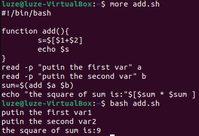 - 必须在调用之前先申明函数,先申明函数,shell脚本是逐行运行(解释性语言)。不会像其它语言一样先去编译。