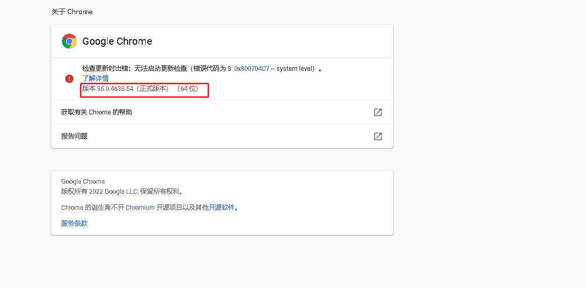 - 查看自己浏览器版本,如下如所示,我们的版本是95.0.4638.54