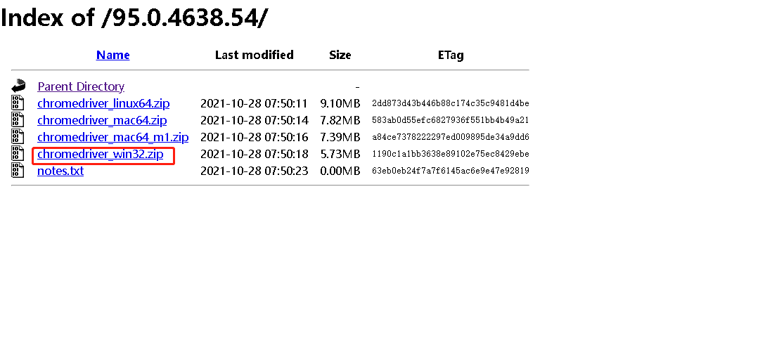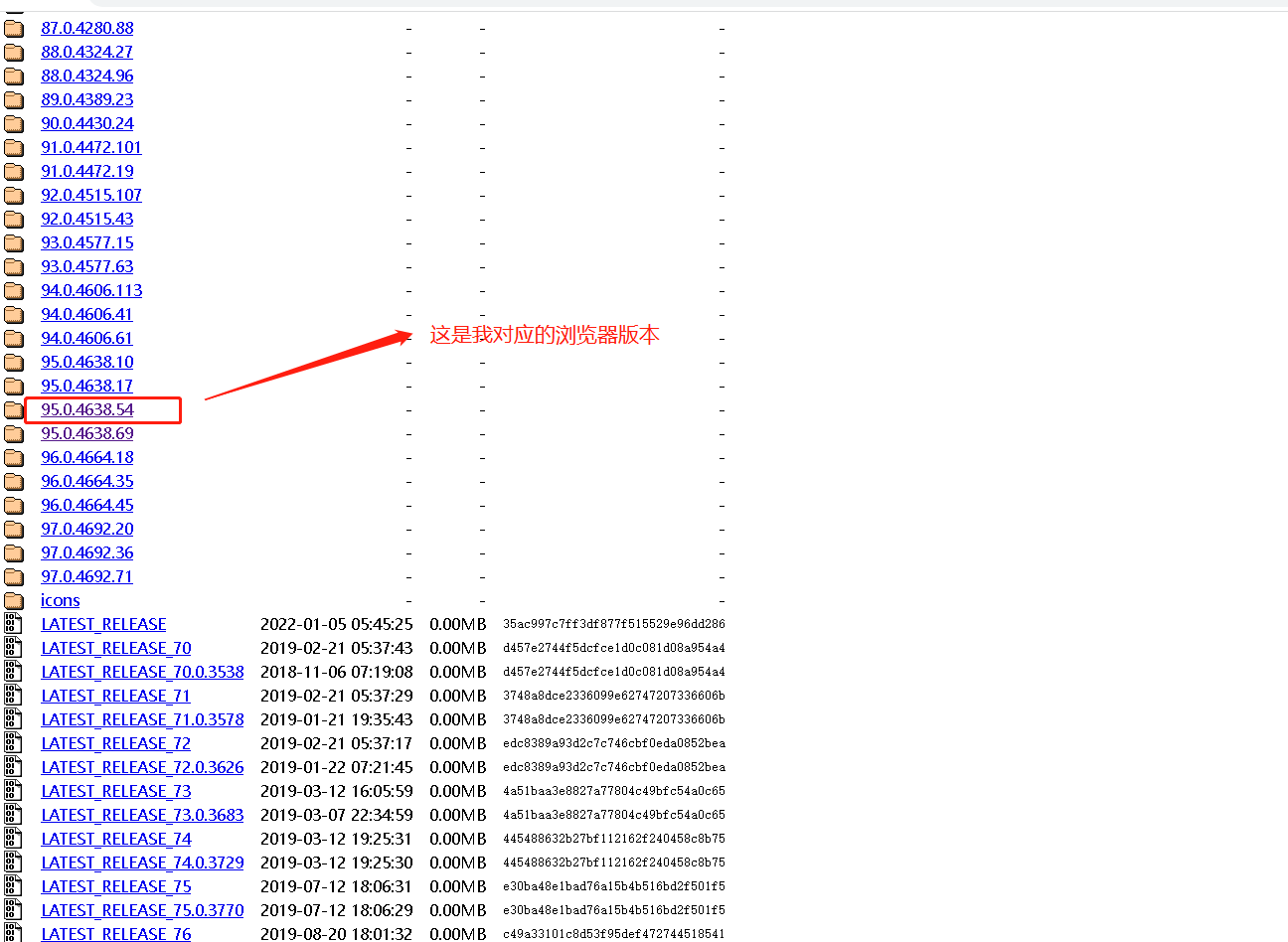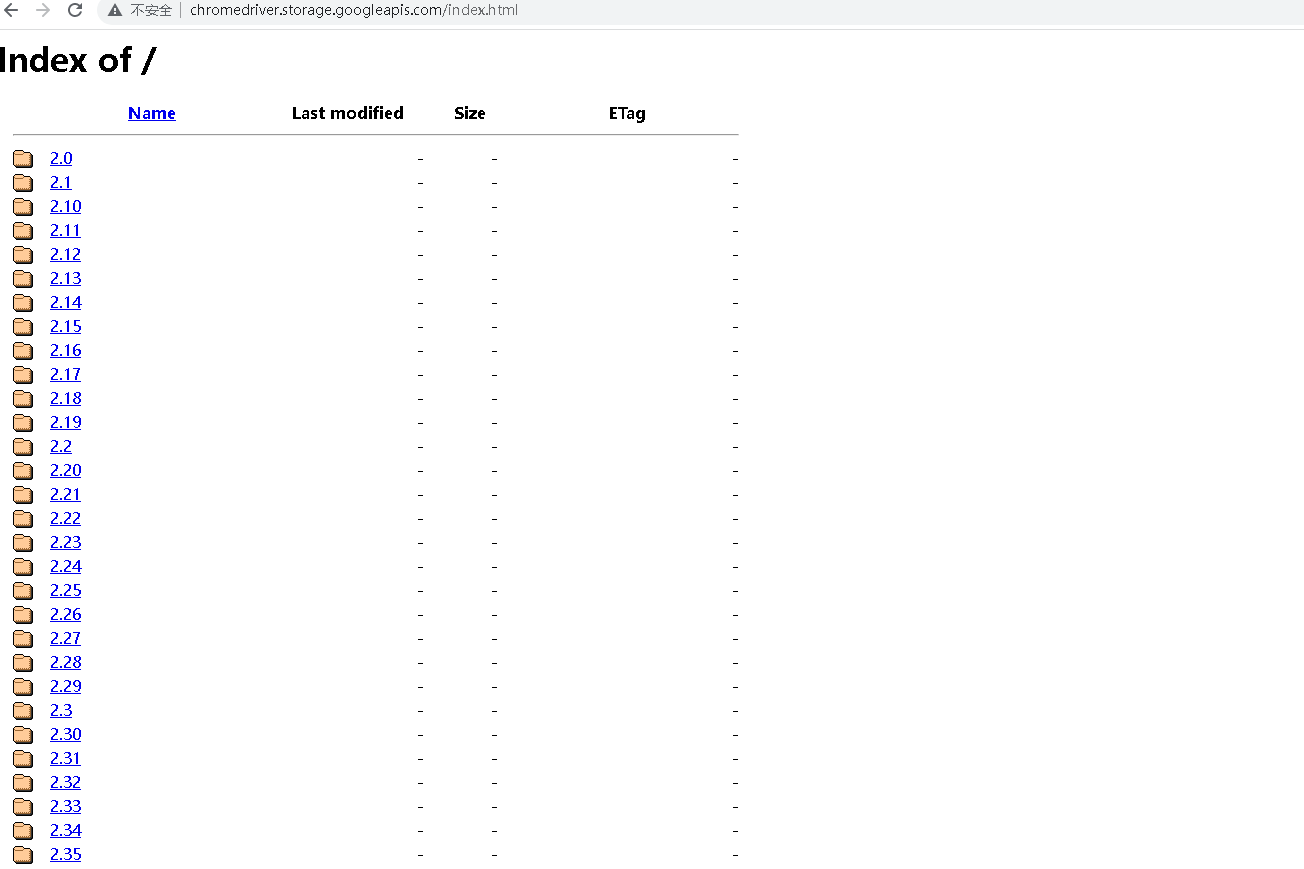 - 浏览器访问驱动下载地址(http://chromedriver.storage.googleapis.com/index.html)