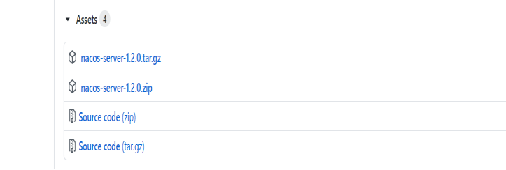 1、GitHub下载已经发布的包:https://github.com/alibaba/nacos/releases 目前版本是 1.3.1,我们这次用的是1.2.0版本.下载启动包即可