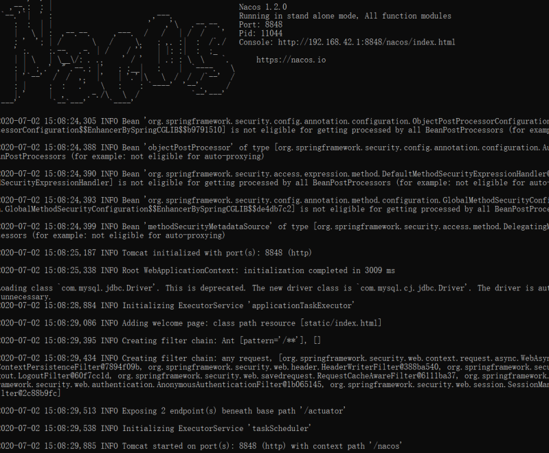 如果是windows启动,则cmd下面执行,startup.cmd即启动Nacos,如果是Linux,则启动startup.sh即可.window启动成功界面如下图所示: