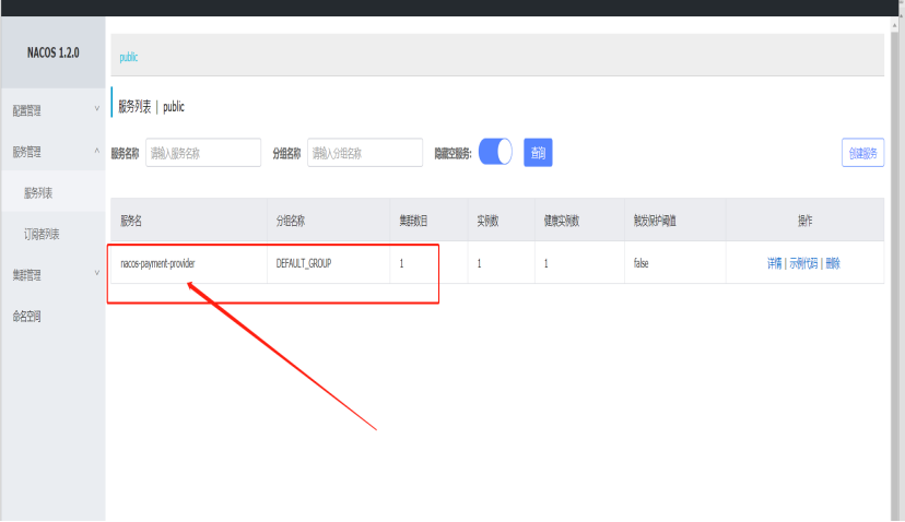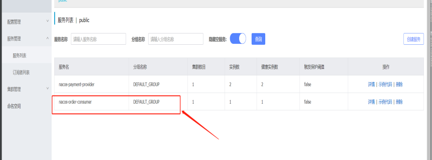 启动服务:查看nacos下服务列表,已经可以看到消费者已经注册上去了。如下图所示: