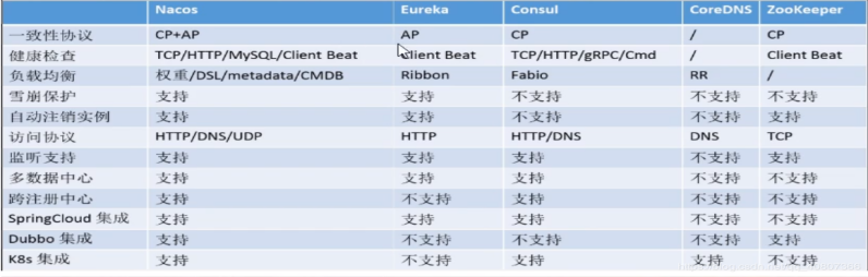 Nacos与其他注册中心的对比: