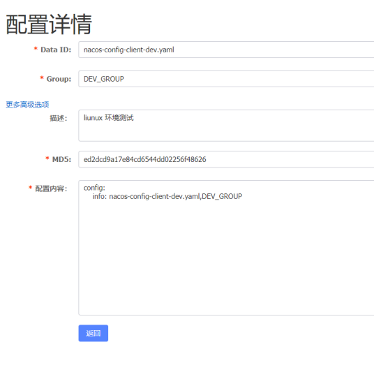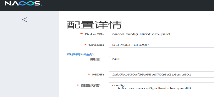 Nacos上面的配置: