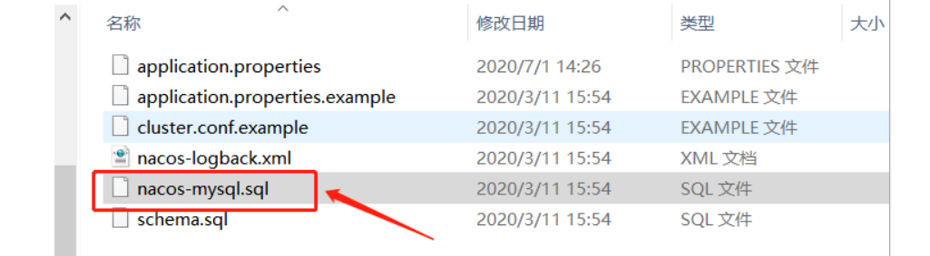 进入conf目录,将nacos-mysql.sql的sql在linux上数据库执行