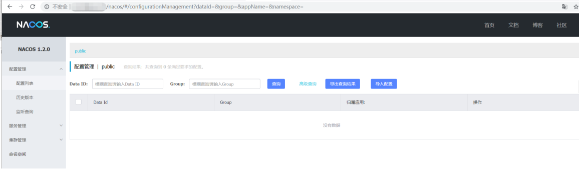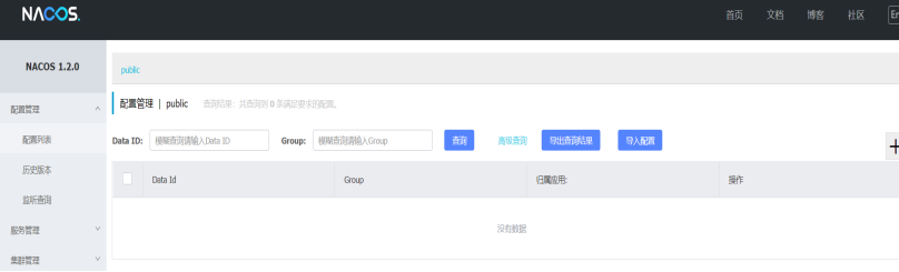 - 启动Nacos,可以看到是一个全新的空记录页面,因为以前的记录是存在derby中,现在切换到mysql了,而mysql里面没数据,所以展示为空哈。
