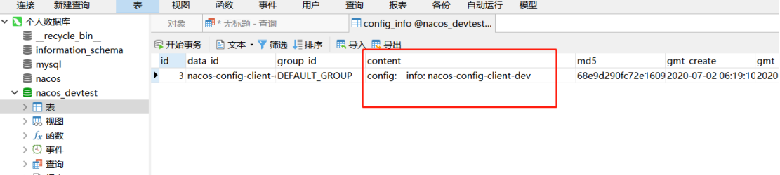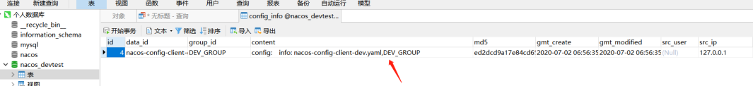 新建一条配置nacos-config-client-dev,看看mysql中是否有记录保存了。