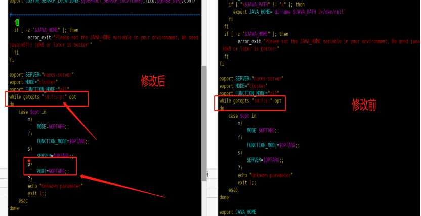 编辑nacos的启动脚本startup.sh,使它能够接受不同的启动端口。