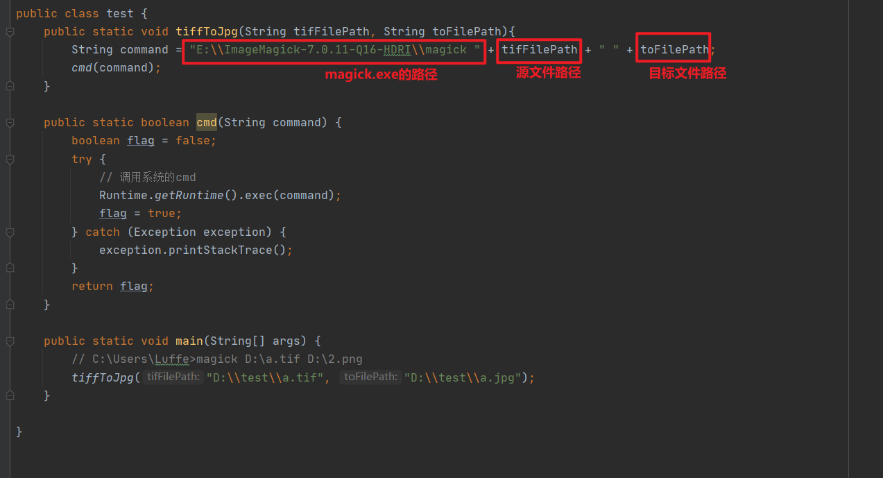 String command = "E:\\ImageMagick-7.0.11-Q16-HDRI\\magick " + tifFilePath + " " + toFilePath;