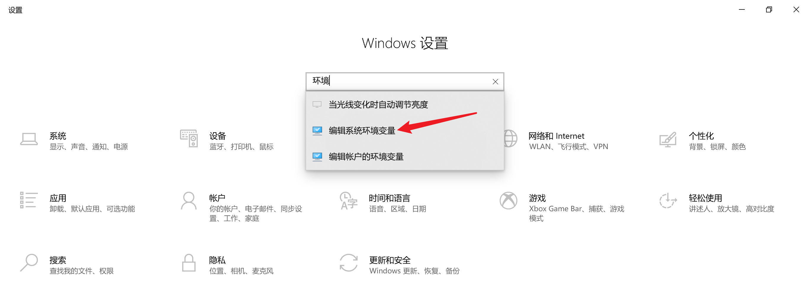 打开环境变量