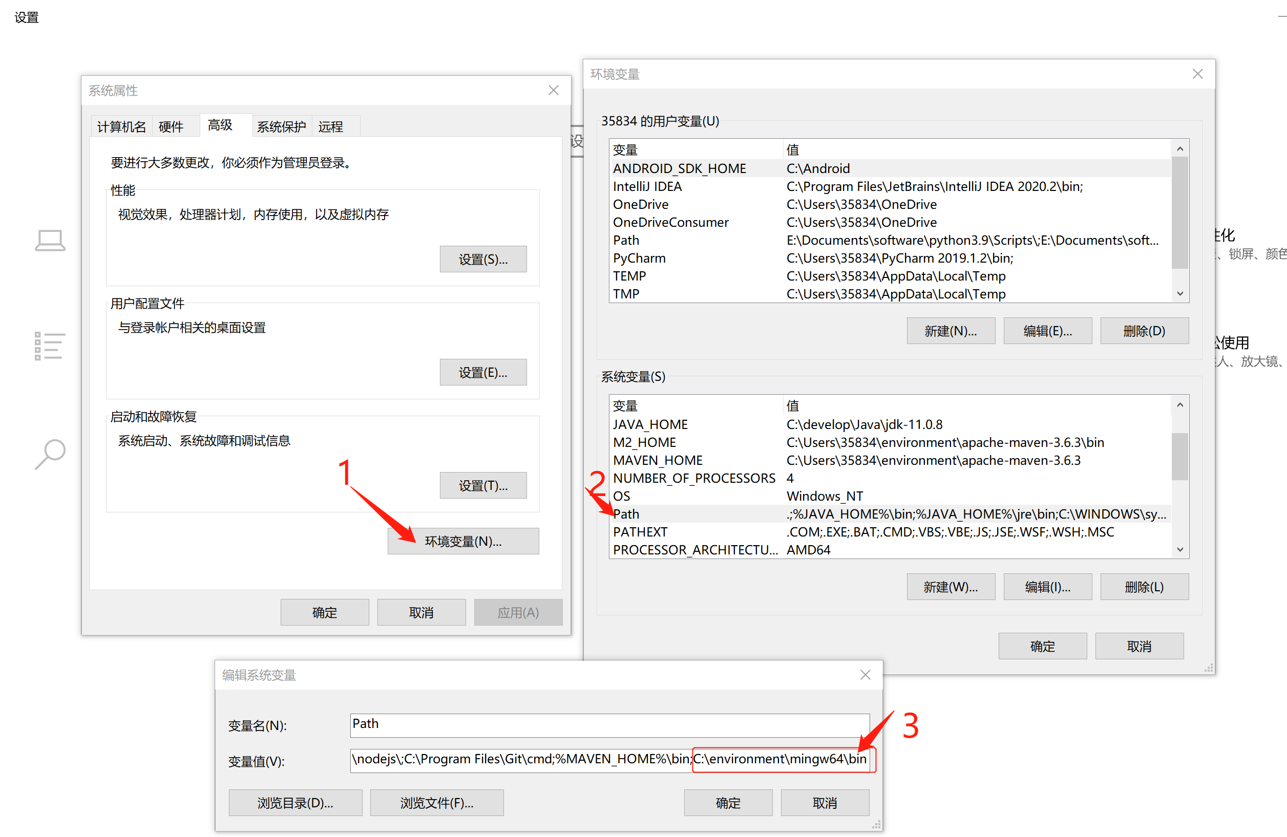 即在系统变量中加入:C:\environment\mingw64\bin 注意: 结合自己的路径.