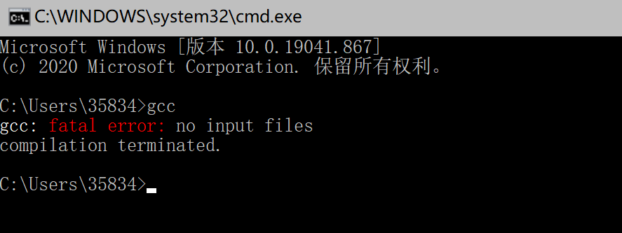 打开cmd, 输入gcc , 显示如下, 则配置成功