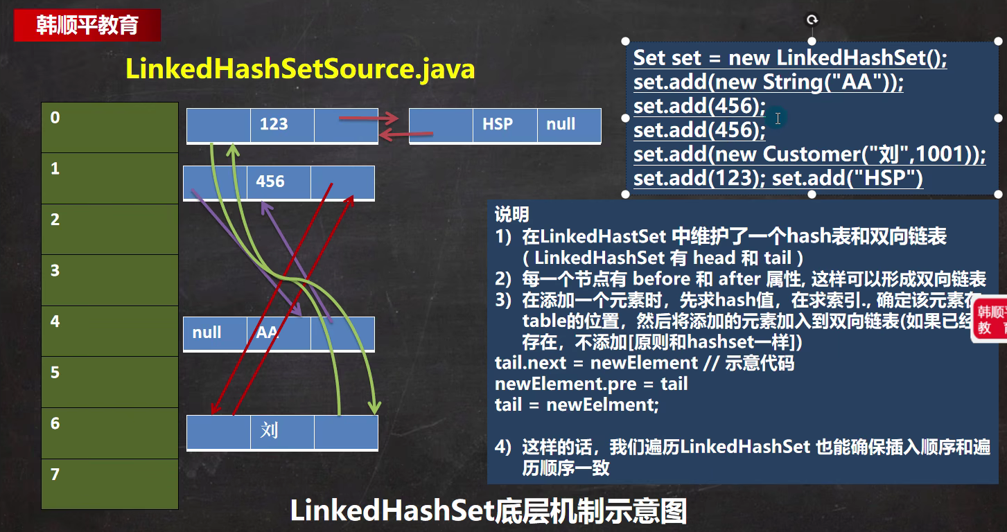 LinkedHashSet增加元素调用map.put(e, PRESENT):(和HashSet一样)