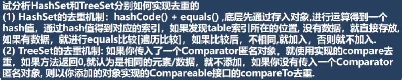 //老韩解读 //1. 当我们使用无参构造器,创建 TreeSet 时,仍然是无序的 //2. 老师希望添加的元素,按照字符串大小来排序 //3. 使用 TreeSet 提供的一个构造器,可以传入一个比较器(匿名内部类) // 并指定排序规则 //4. 简单看看源码 //老韩解读 /* 1. 构造器把传入的比较器对象,赋给了 TreeSet 的底层的 TreeMap 的属性 this.comparator public TreeMap(Comparator<? super K> comparator) { this.comparator = comparator; } 2. 在 调用 treeSet.add("tom"), 在底层会执行到 if (cpr != null) {//cpr 就是我们的匿名内部类(对象) 韩顺平循序渐进学Java 零基础第688页do { parent = t; //动态绑定到我们的匿名内部类(对象)compare cmp = cpr.compare(key, t.key); if (cmp < 0) t = t.left; else if (cmp > 0) t = t.right; else //如果相等,即返回 0,这个 Key 就没有加入 return t.setValue(value); } while (t != null); } */ // TreeSet treeSet = new TreeSet(); TreeSet treeSet = new TreeSet(new Comparator() { @Override public int compare(Object o1, Object o2) { //下面 调用 String 的 compareTo 方法进行字符串大小比较 //如果老韩要求加入的元素,按照长度大小排序 //return ((String) o2).compareTo((String) o1); return ((String) o1).length() - ((String) o2).length(); } }); //添加数据. treeSet.add("jack"); treeSet.add("tom");//3 treeSet.add("sp"); treeSet.add("a"); treeSet.add("abc");//3 System.out.println("treeSet=" + treeSet);