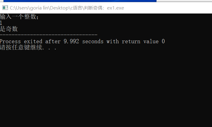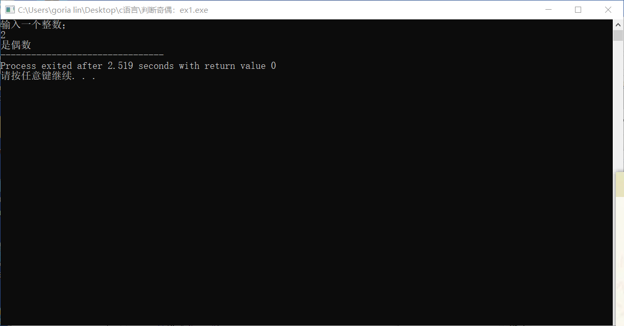 #include <stdio.h> int main(){ int x; printf("输入一个整数; \n"); scanf("%d",&x); if(x % 2 == 0) printf("是偶数"); else printf("是奇数"); return 0; }