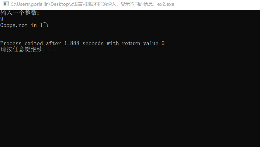 根据不同的输入,显示不同提示信息:ex2.c